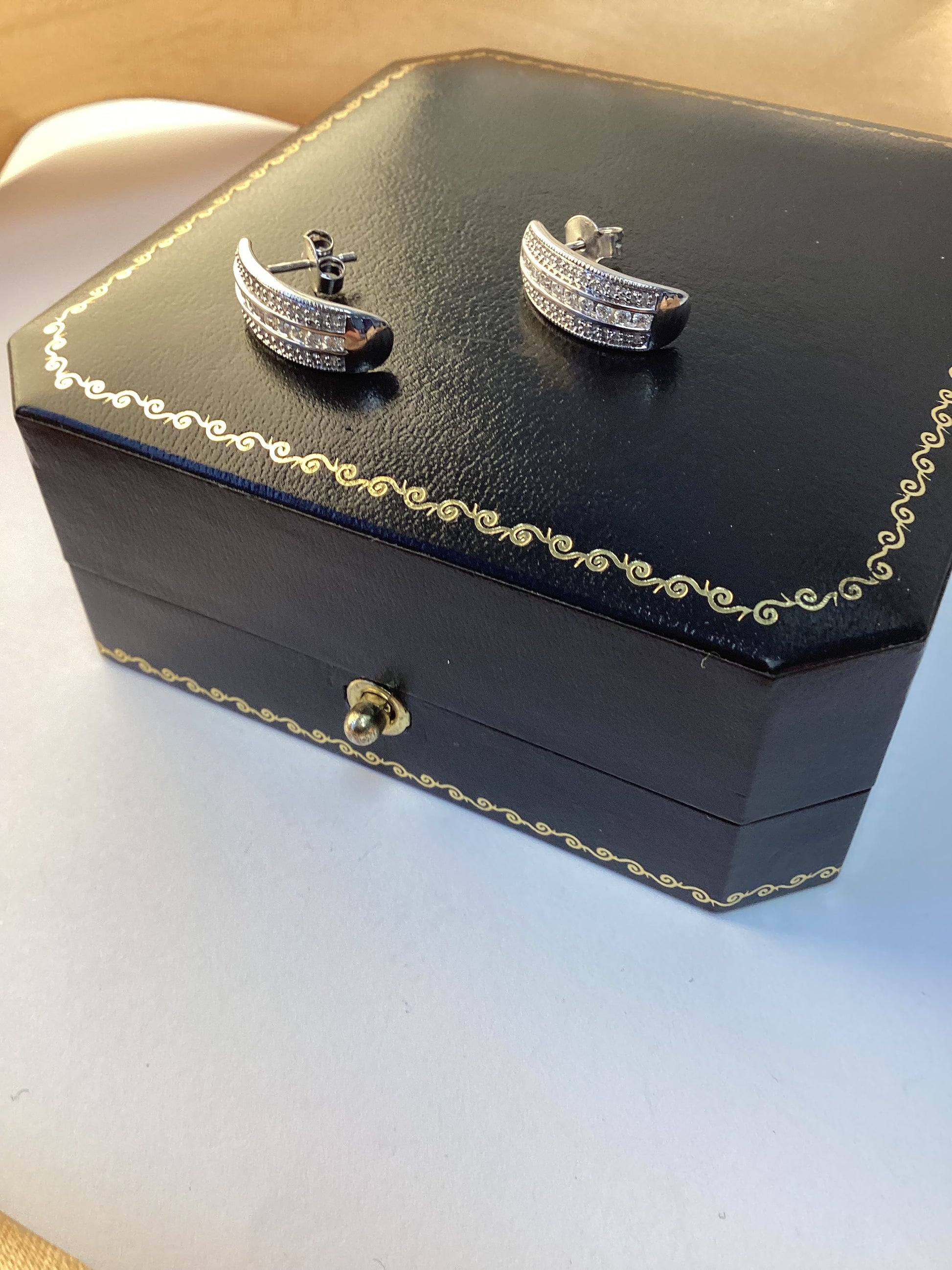 These 9ct White Gold Diamond Cuff Earrings come with butterfly fasteners