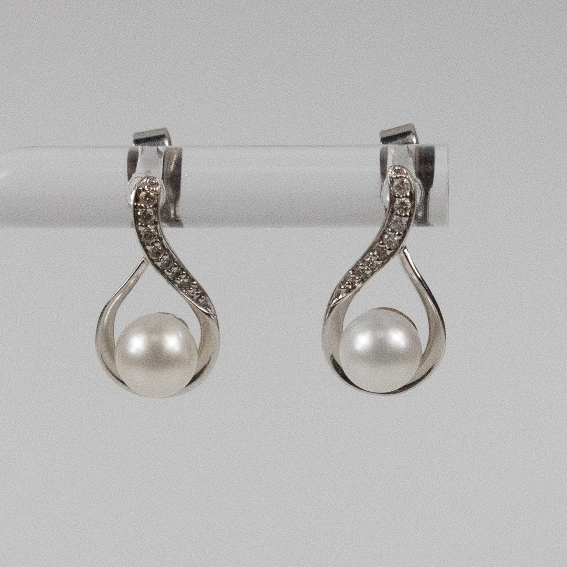 9ct White Gold Pearl and Cubic Zirconia Swirl Stud Earrings