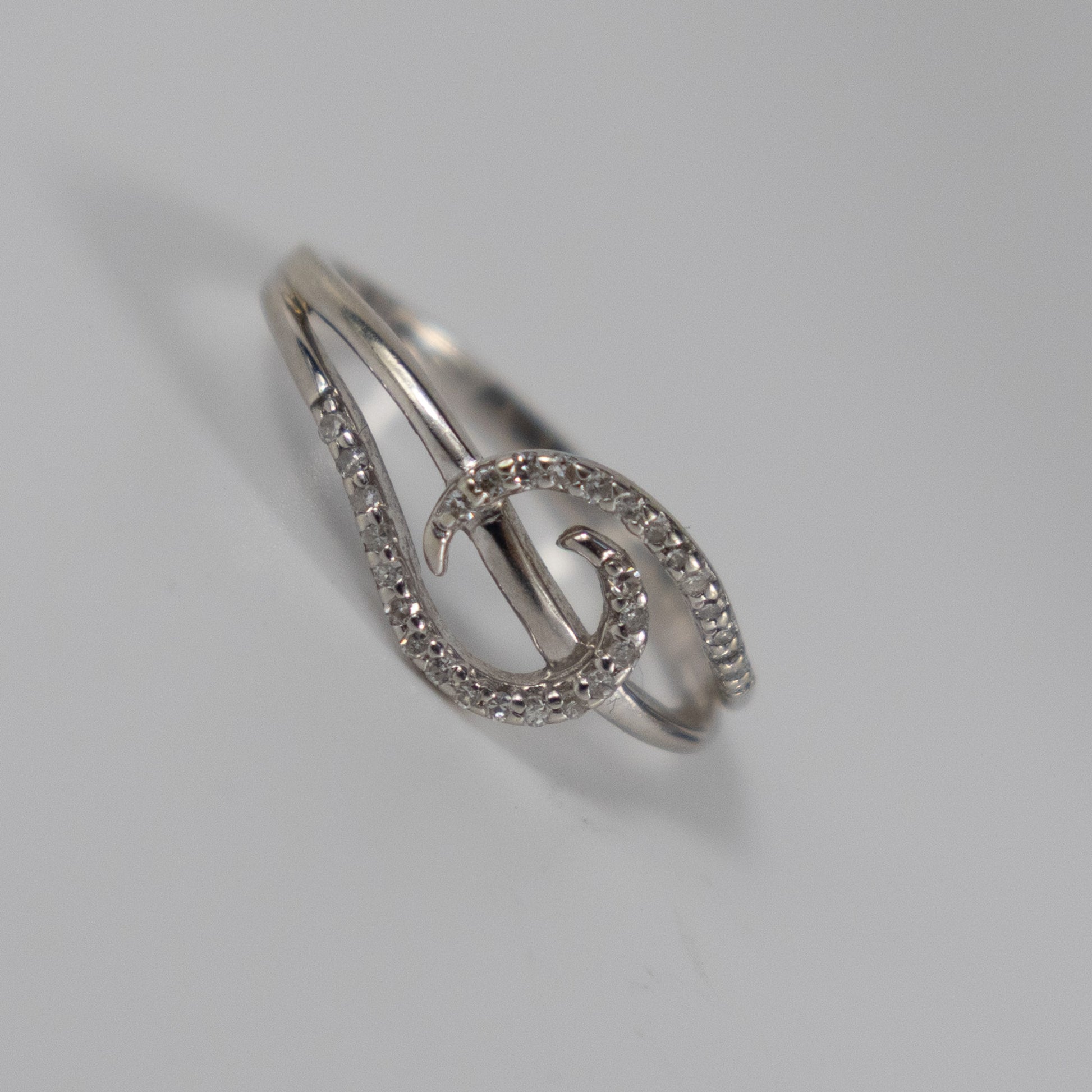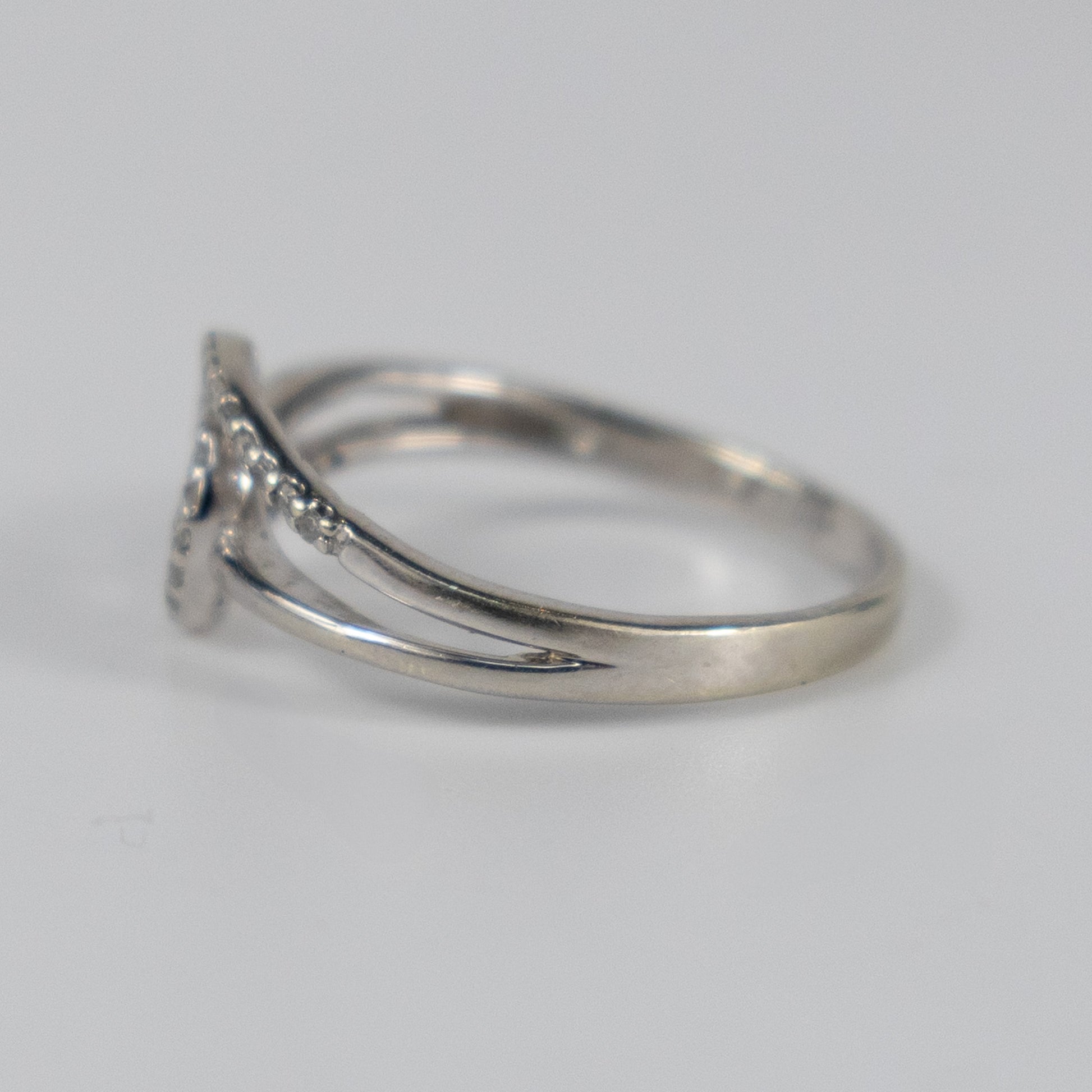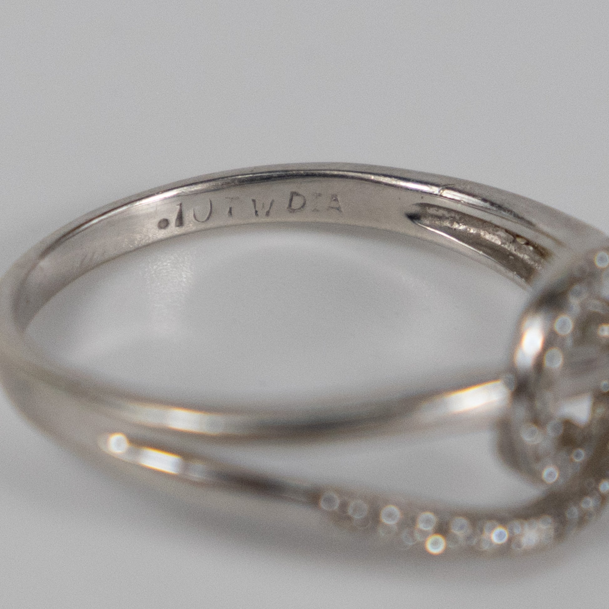 This elegant second-hand ring features a delicate twist design in white gold, accented with small sparkling diamonds. The open loop detail gives it a modern yet timeless look. A subtle statement piece that catches the light beautifully perfect for everyday wear or layering with other favourites. Fully authenticated and in excellent condition.
