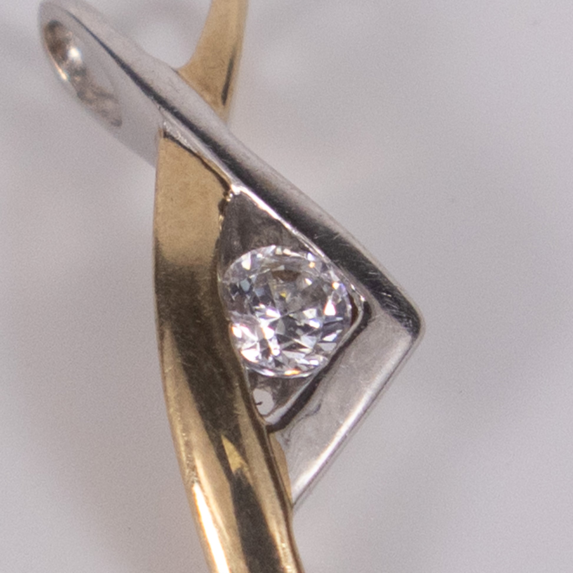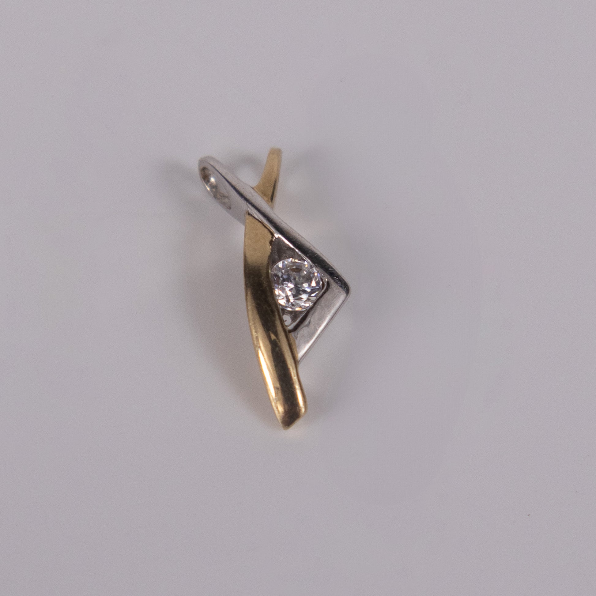 This second-hand pendant is made from 9ct yellow and white gold, featuring a sleek twisted design that holds a bright cubic zirconia at the centre. The contrasting metals give it a clean, modern look, while the round-cut stone adds a bit of sparkle without being over the top. Fully hallmarked on the reverse, it's a great everyday piece with a contemporary edge.