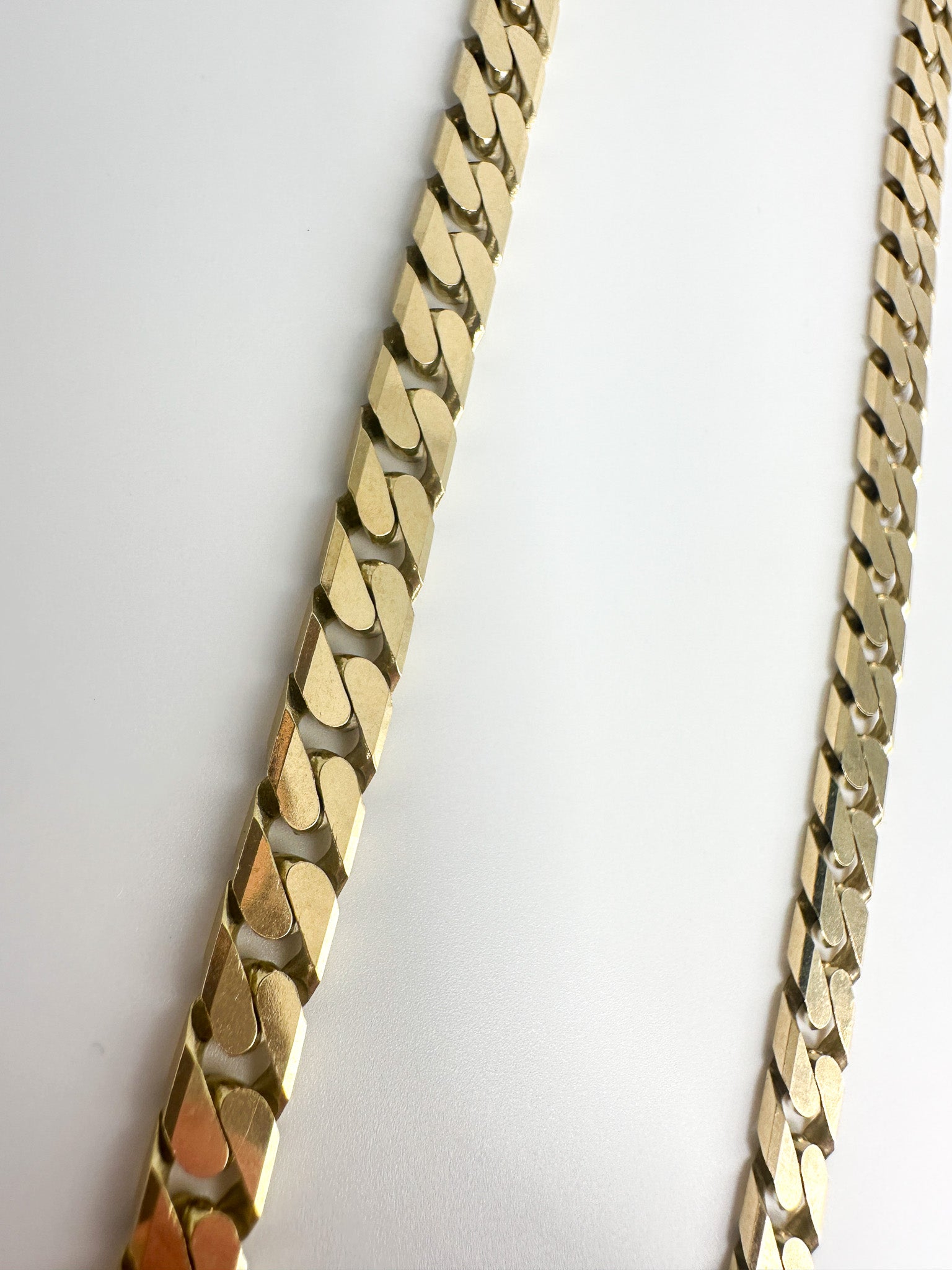 This 20 inch chain is 9ct gold with a width of 5mm and holds a full UK Hallmark and secure trigger fastener.