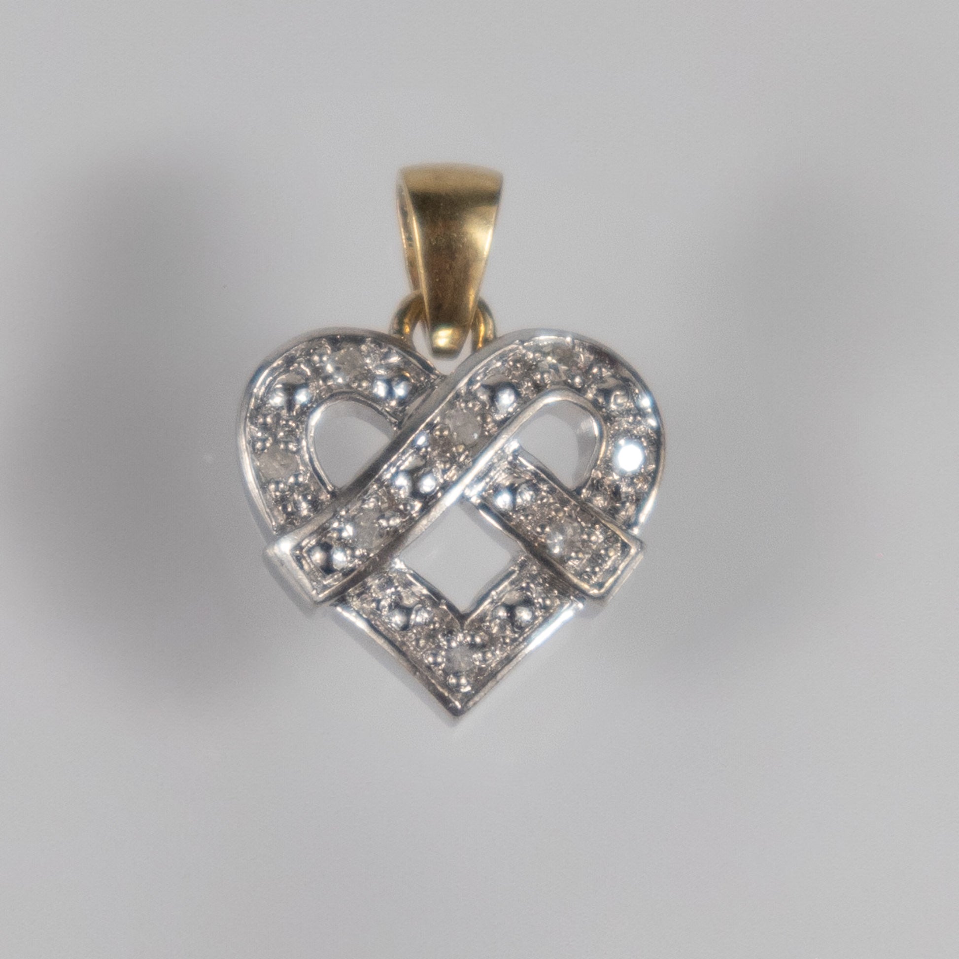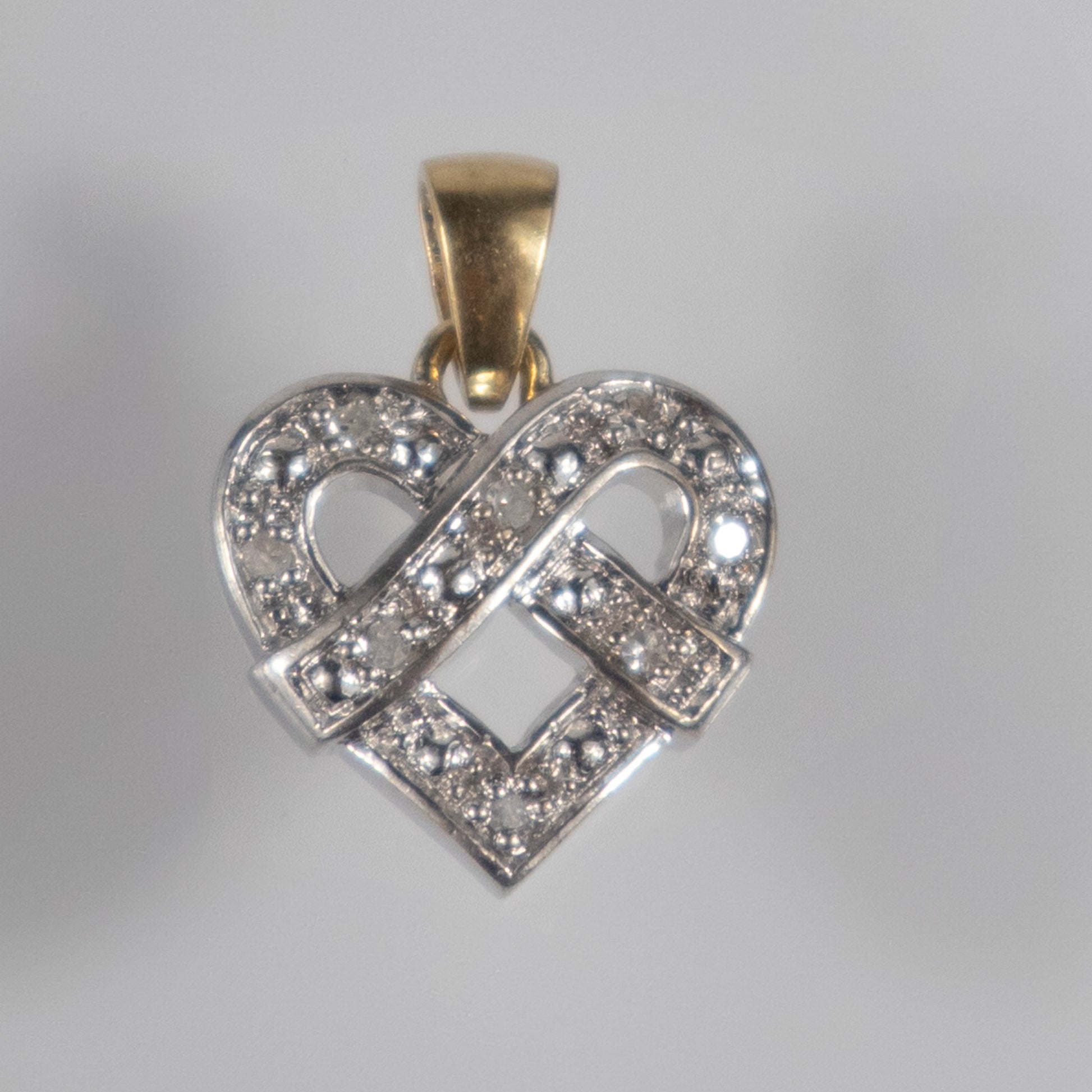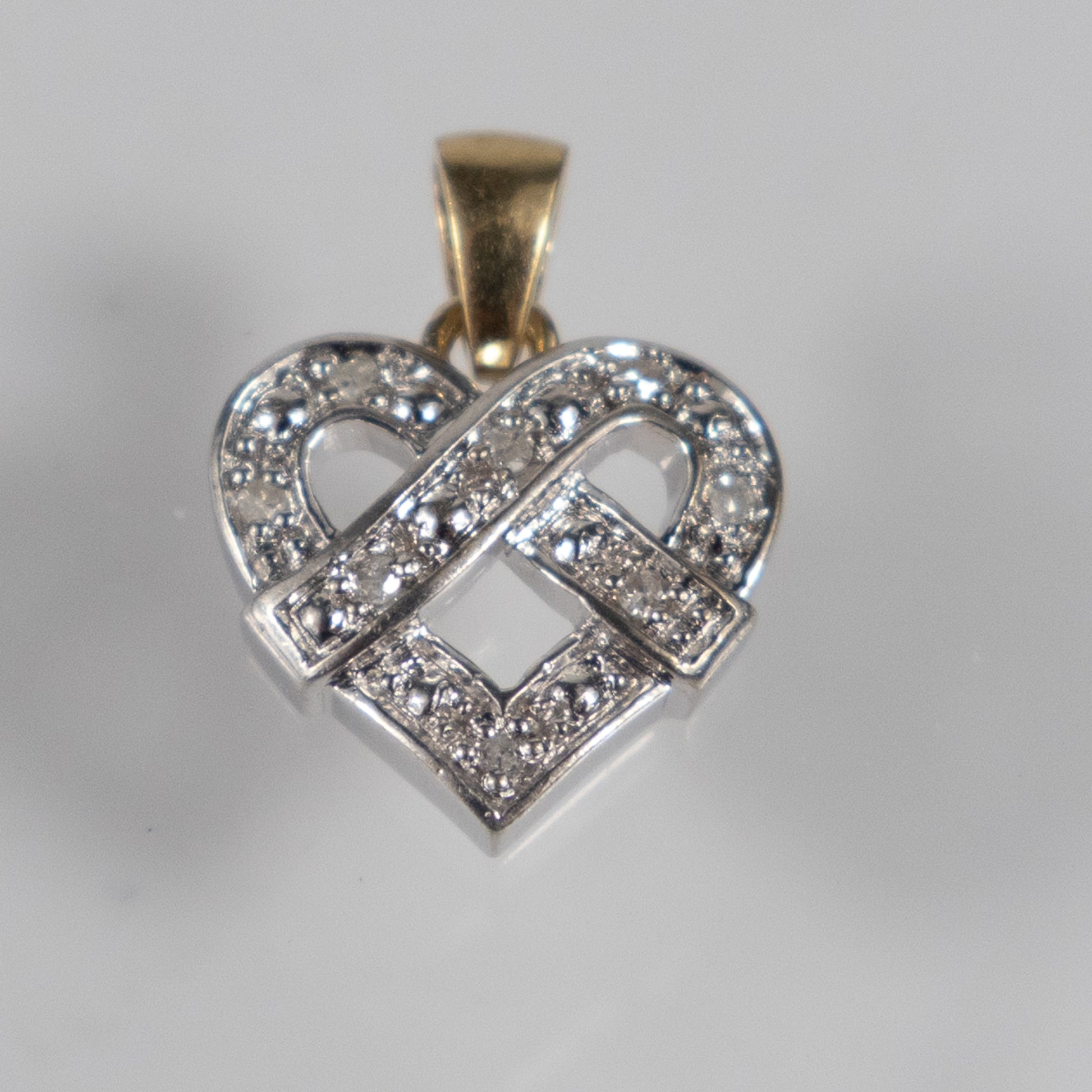 9ct Yellow Gold & Diamond Heart Knot Pendant
