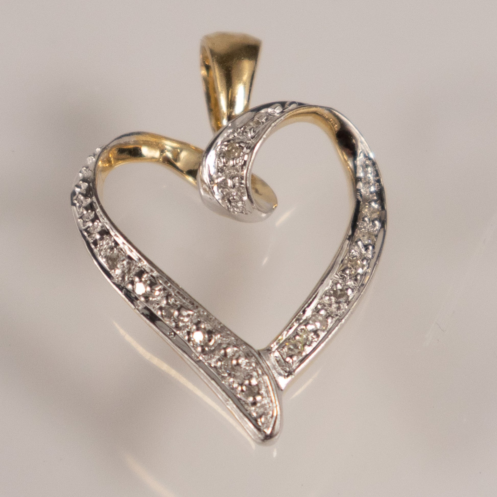9ct Yellow Gold Diamond Swirl Heart Pendant