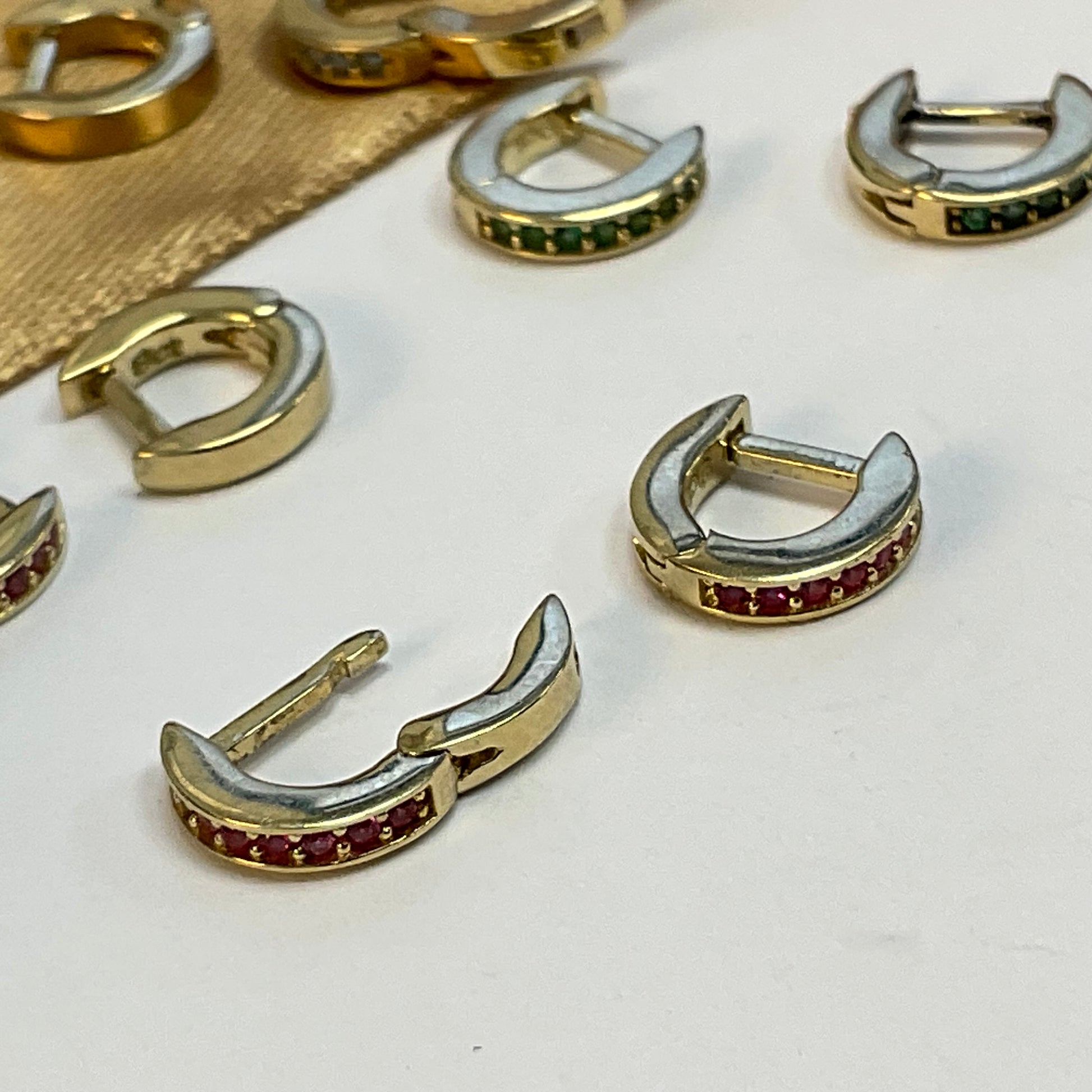 This 9ct Yellow Gold Earring Cuffs is set with Pink Sapphire gemstones. These upper ear cuffs are delicate and subtle, idea for upper ear piercings. These come as single earrings.