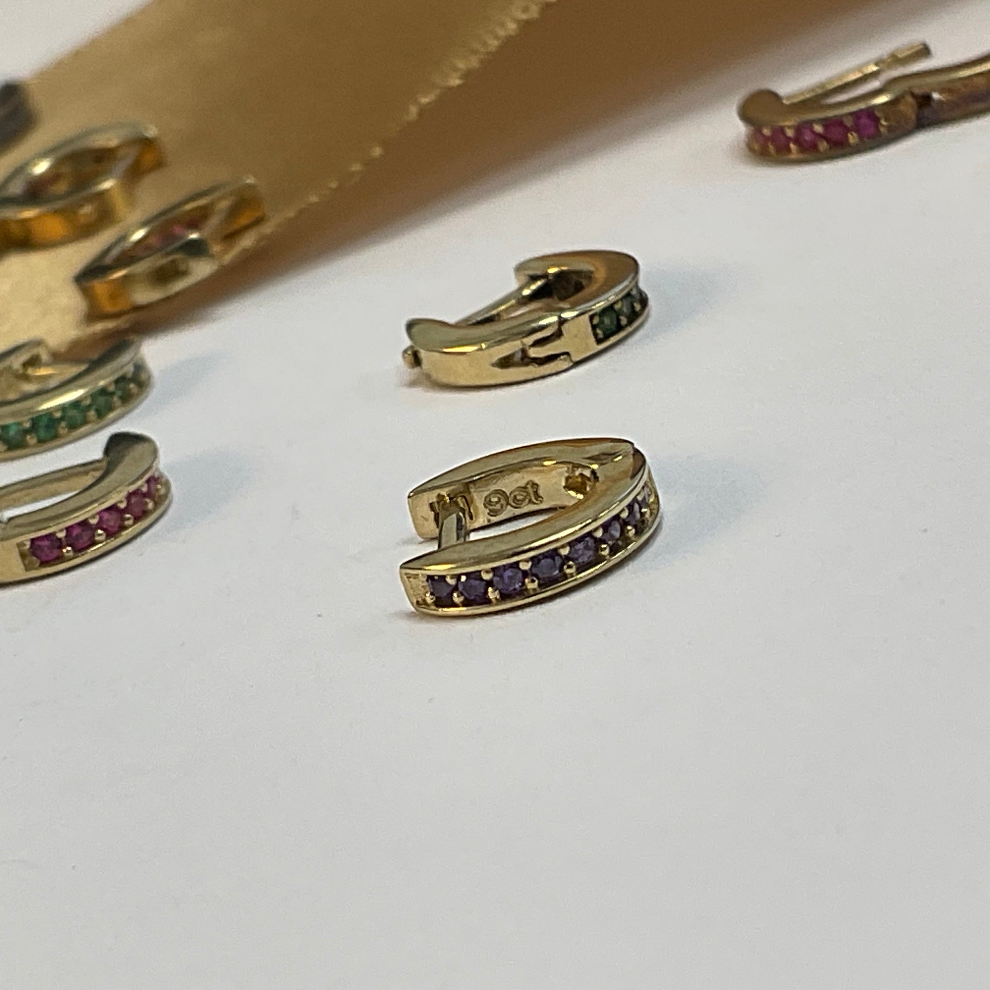 This 9ct Yellow Gold Earring Cuffs are set with Purple Amethyst gemstones. These upper ear cuffs are delicate and subtle, idea for upper ear piercings. These come as single earrings.