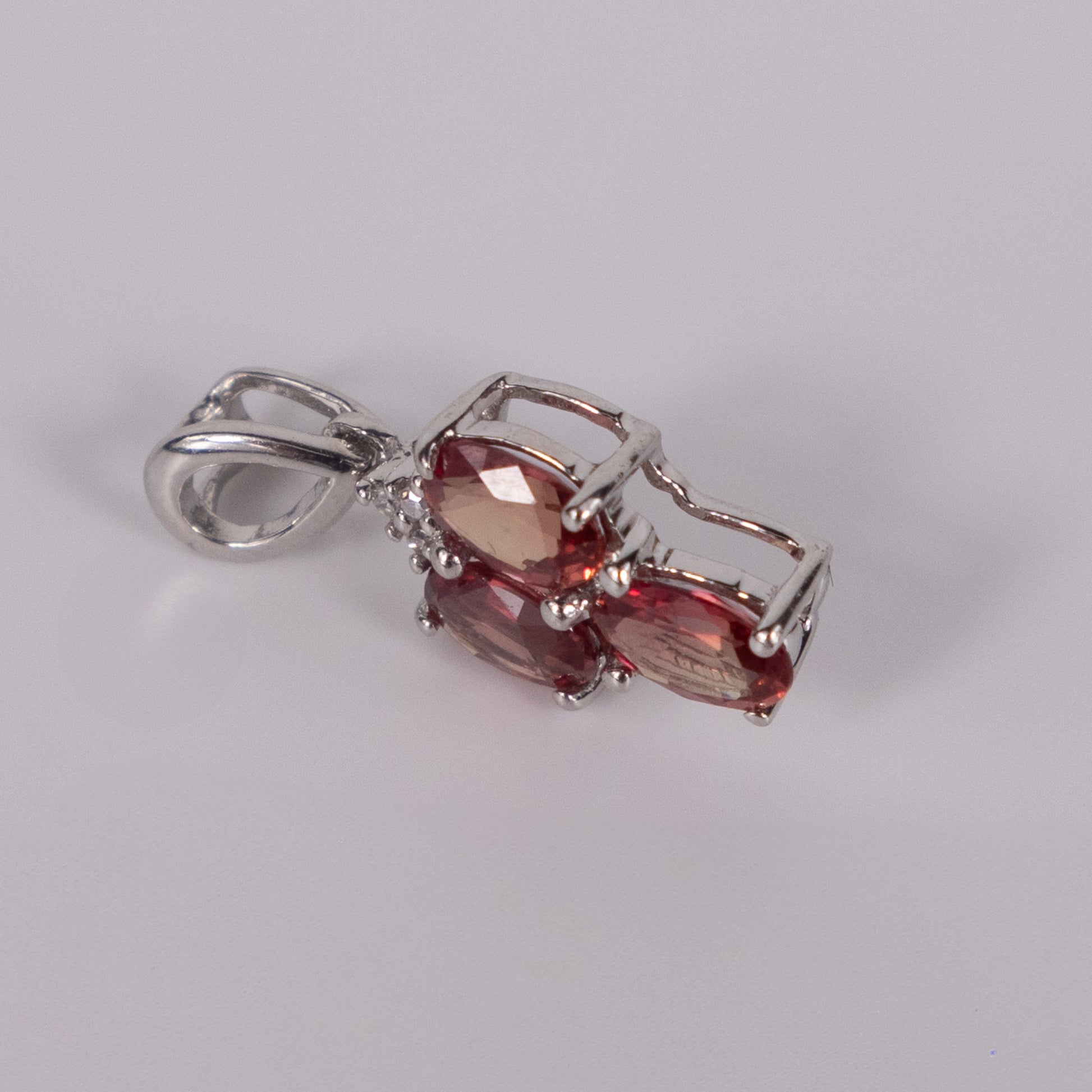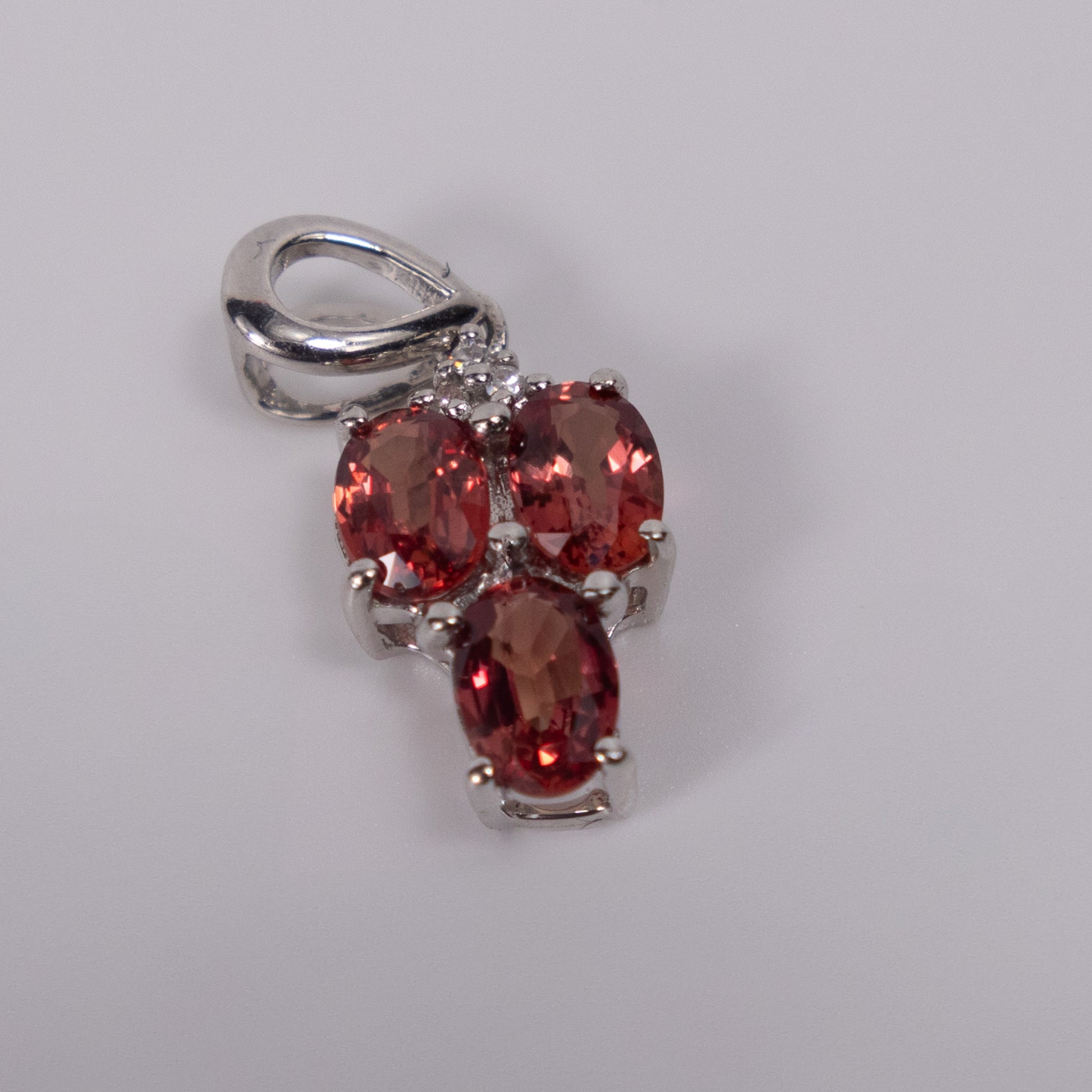 This second-hand pendant is made from 9ct white gold and set with three vivid pink tourmalines arranged in a classic cluster. A small trio of diamonds sits just above the stones, adding a touch of sparkle. The pendant is fully hallmarked and has a clean, modern setting with an open back that allows plenty of light to pass through the gems. Light wear to the bale consistent with previous use, but overall in excellent condition.