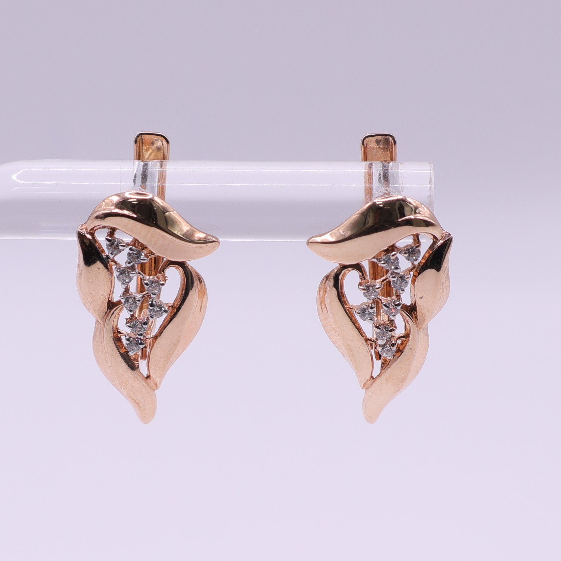 Second Hand 14ct Rose Gold Diamond Leaf Earrings