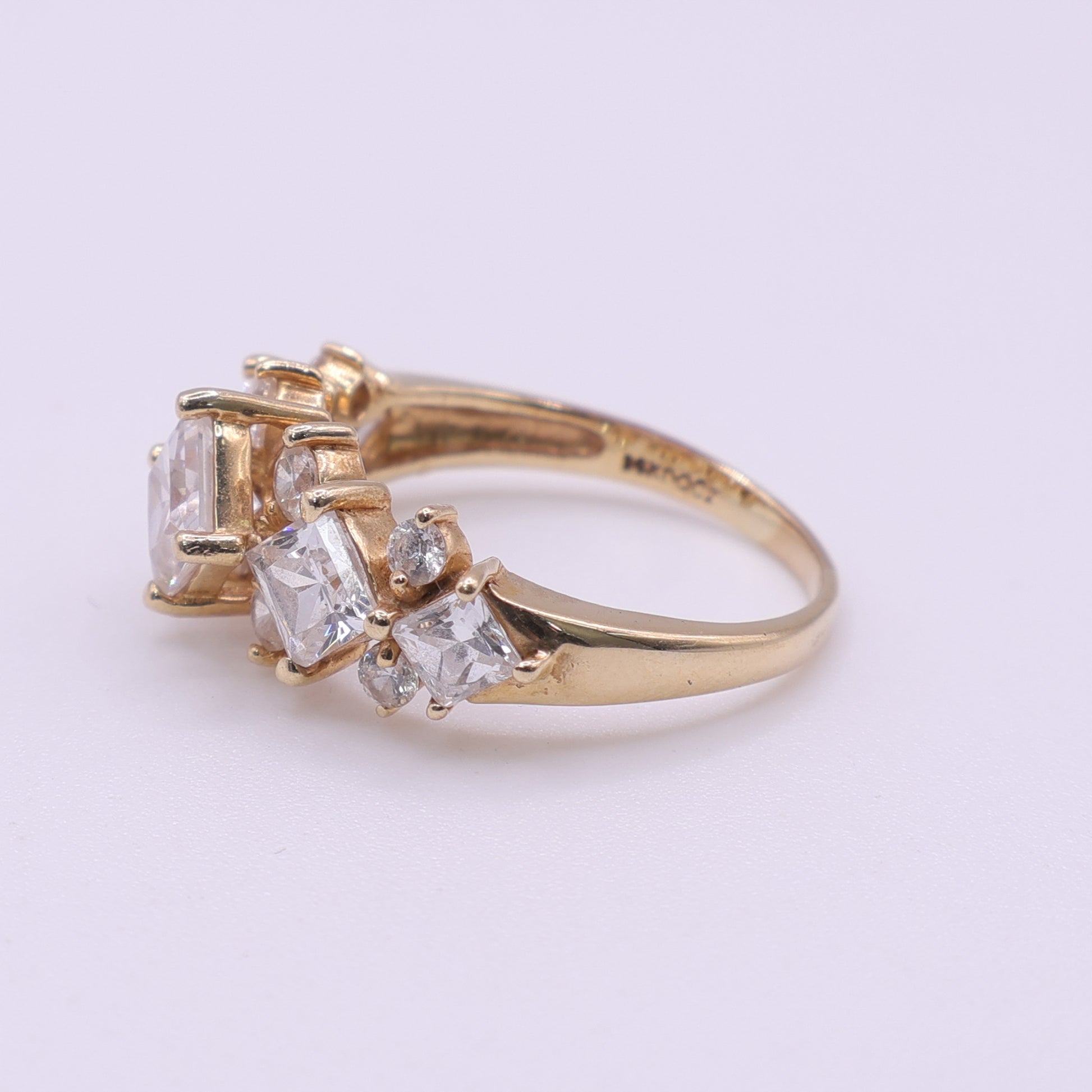 Second Hand 14ct Yellow Gold Ring with Princess and Round Cut Clear Cubic Zirconia Stones