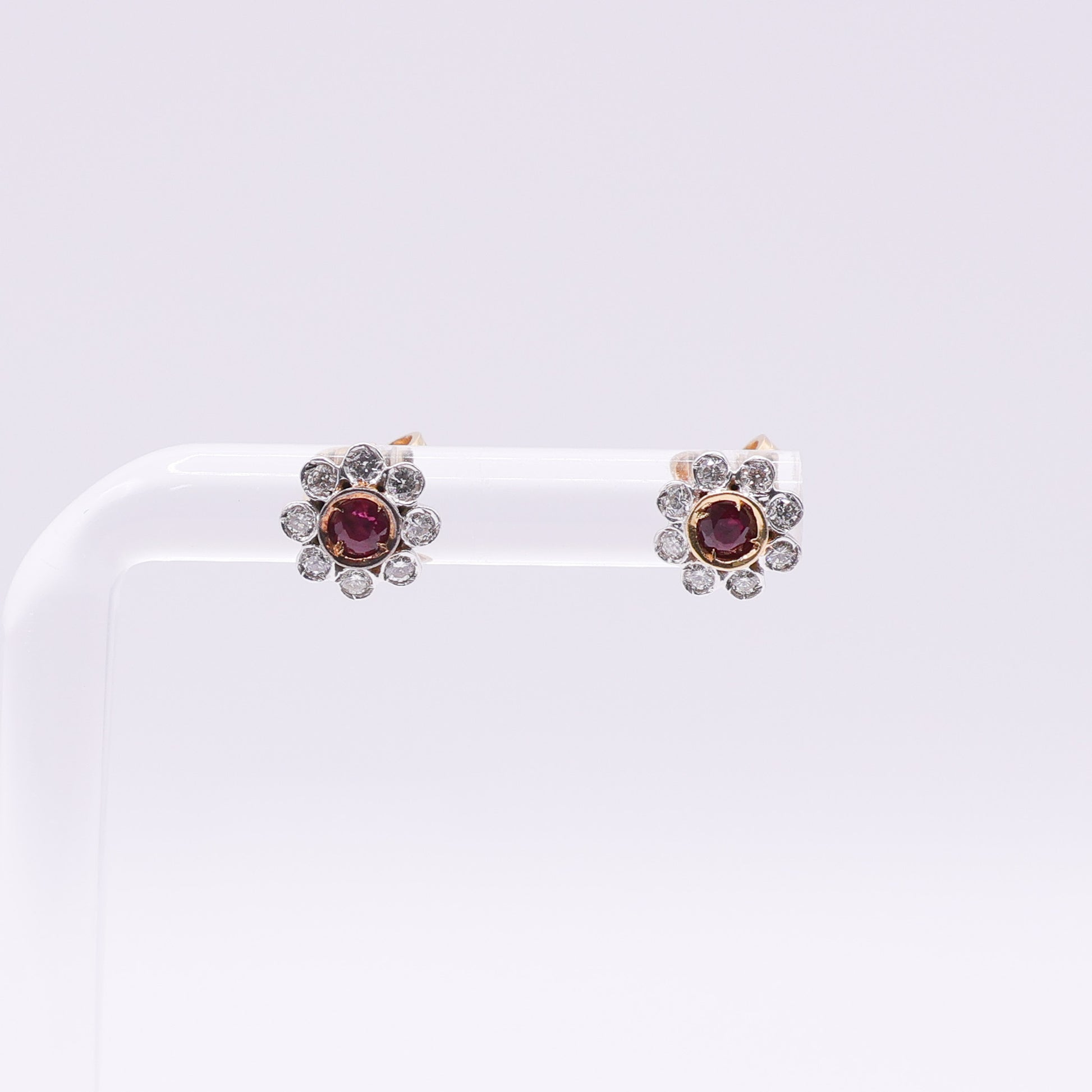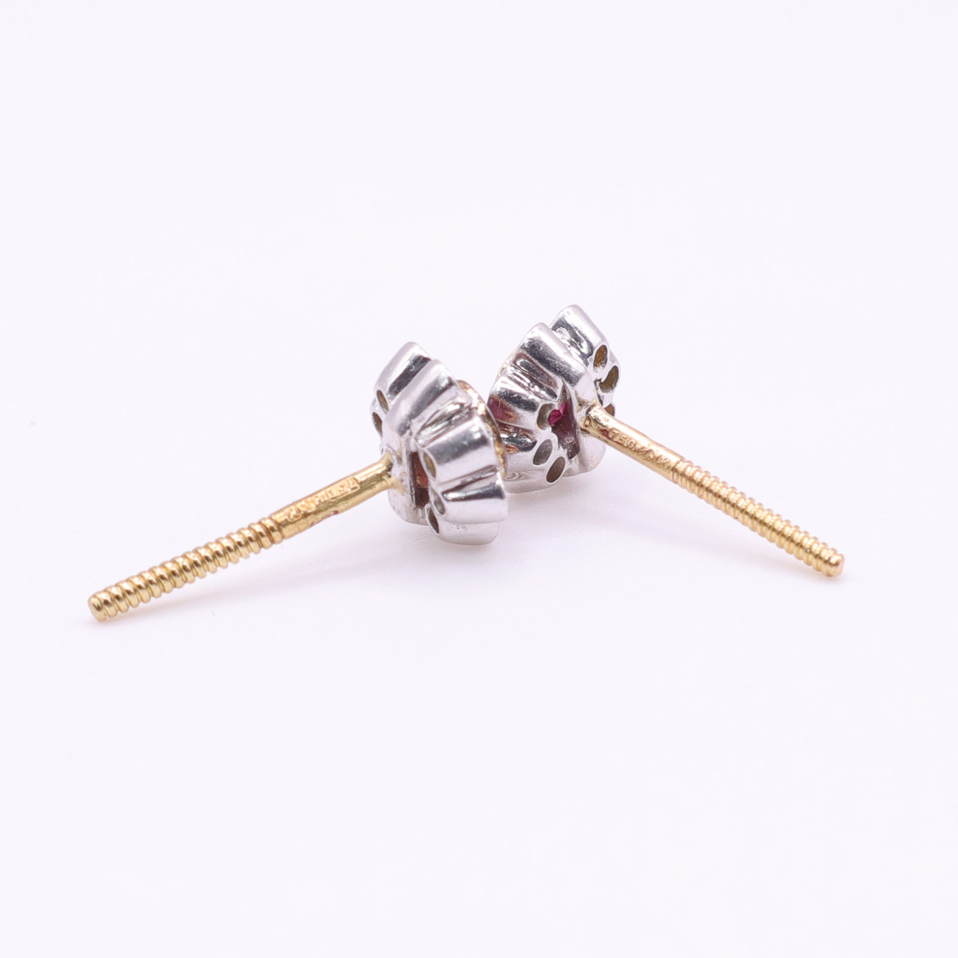 Second Hand 18ct Yellow Gold Ruby and Diamond Cluster Stud Earrings