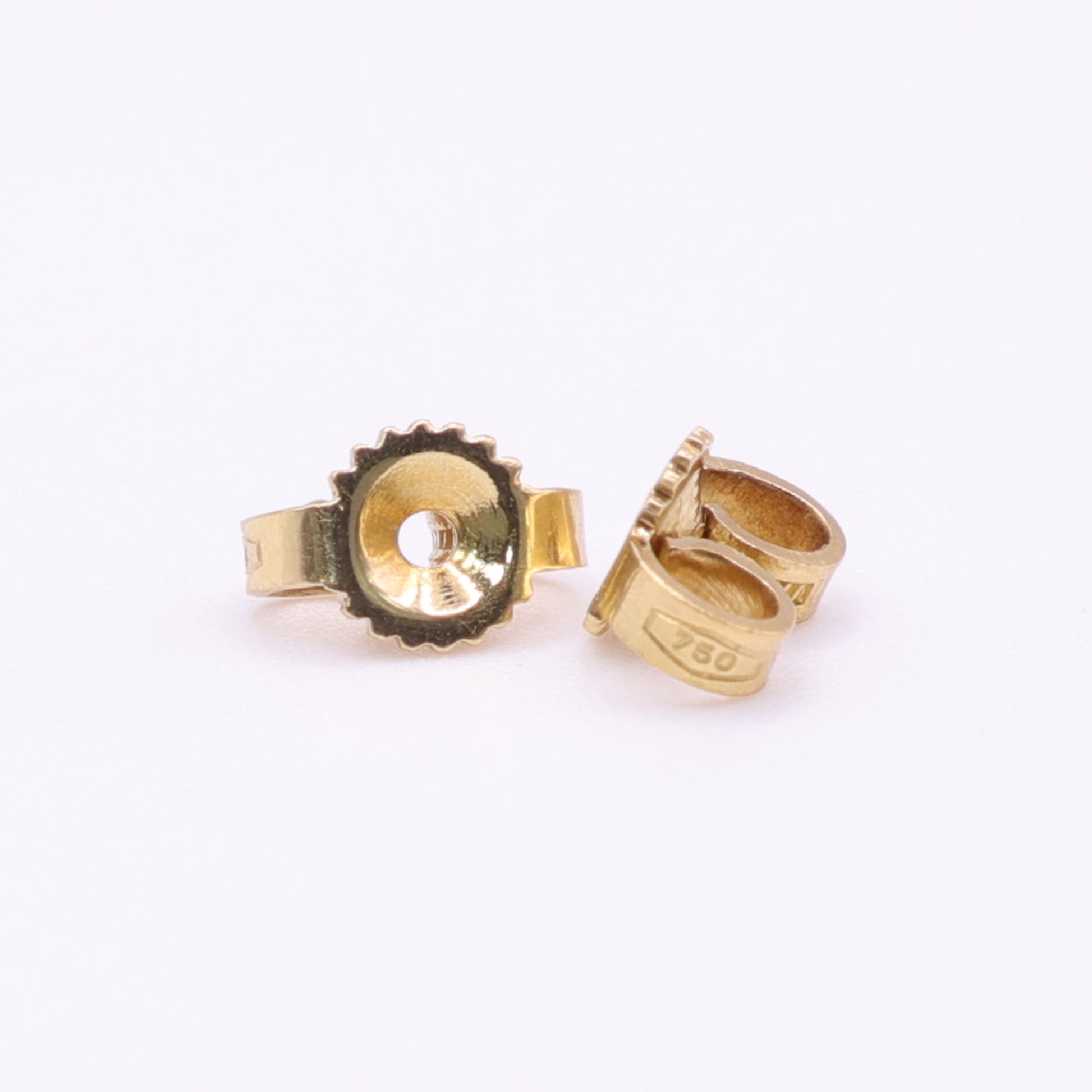 The earrings are fitted with secure screw-back posts and are stamped 750, confirming 18ct gold. They are pre-owned and in good condition, showing light surface wear consistent with normal use. The stones are well set and the fittings remain in good working order.
