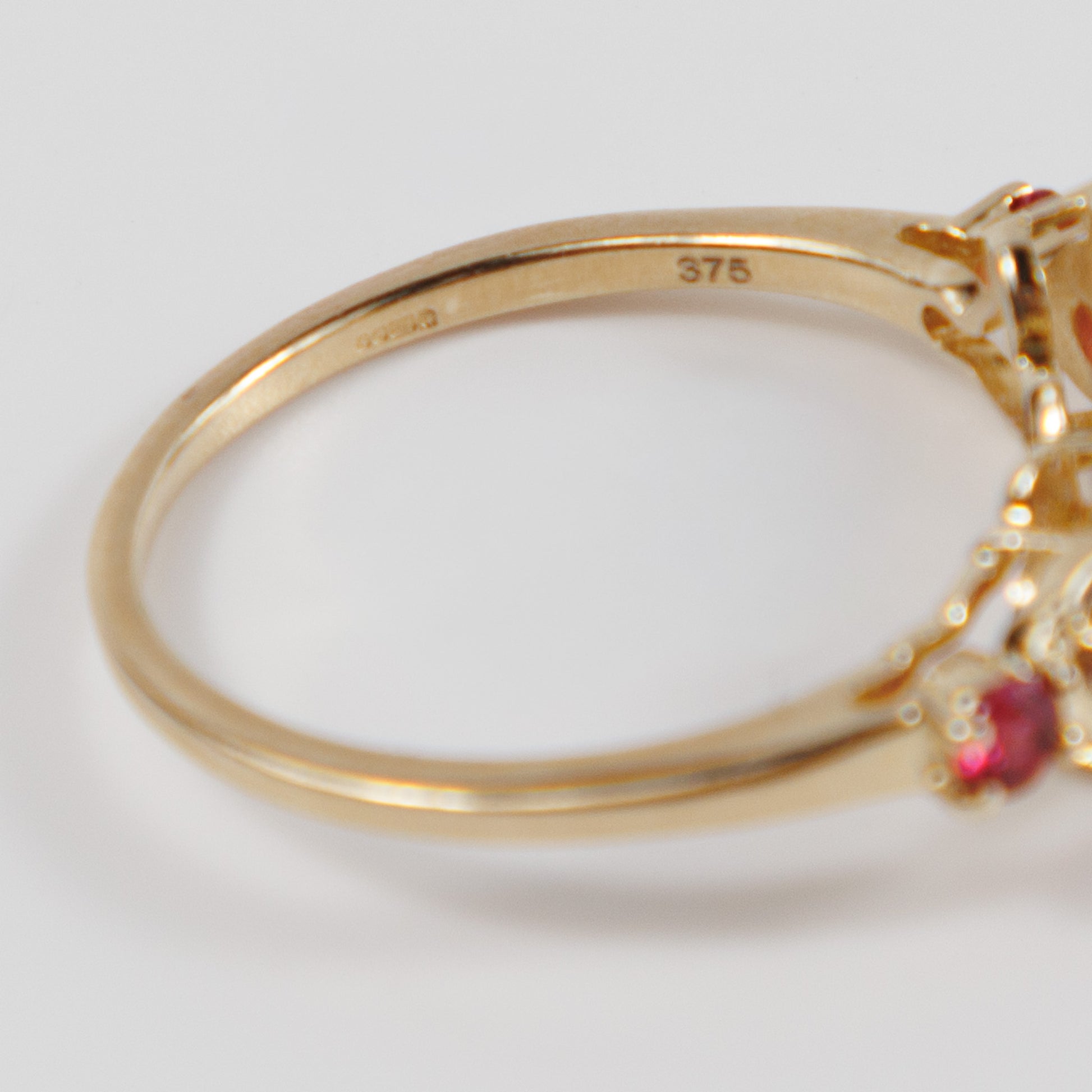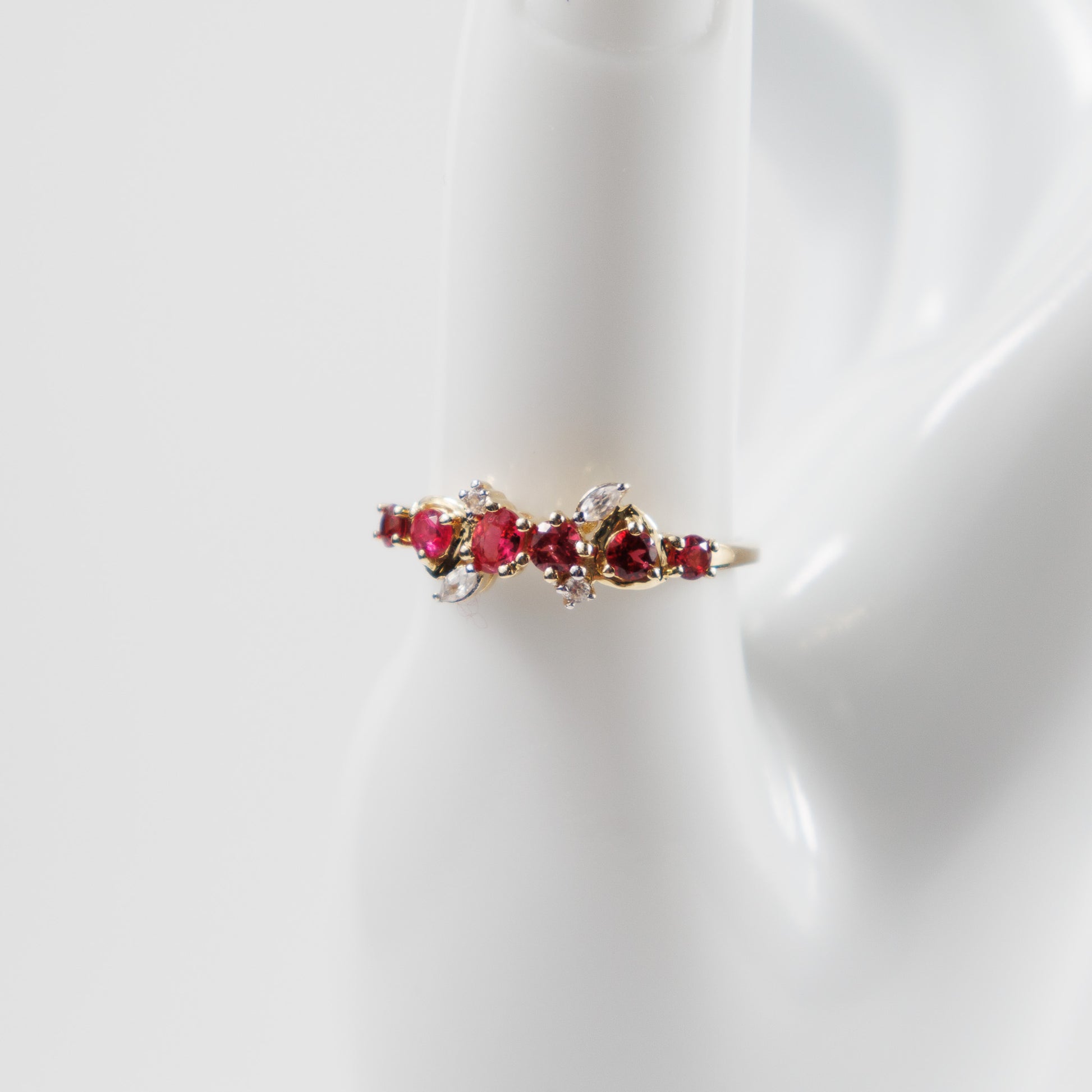 Second-Hand 9ct Yellow Gold Red Stone Cluster Ring
