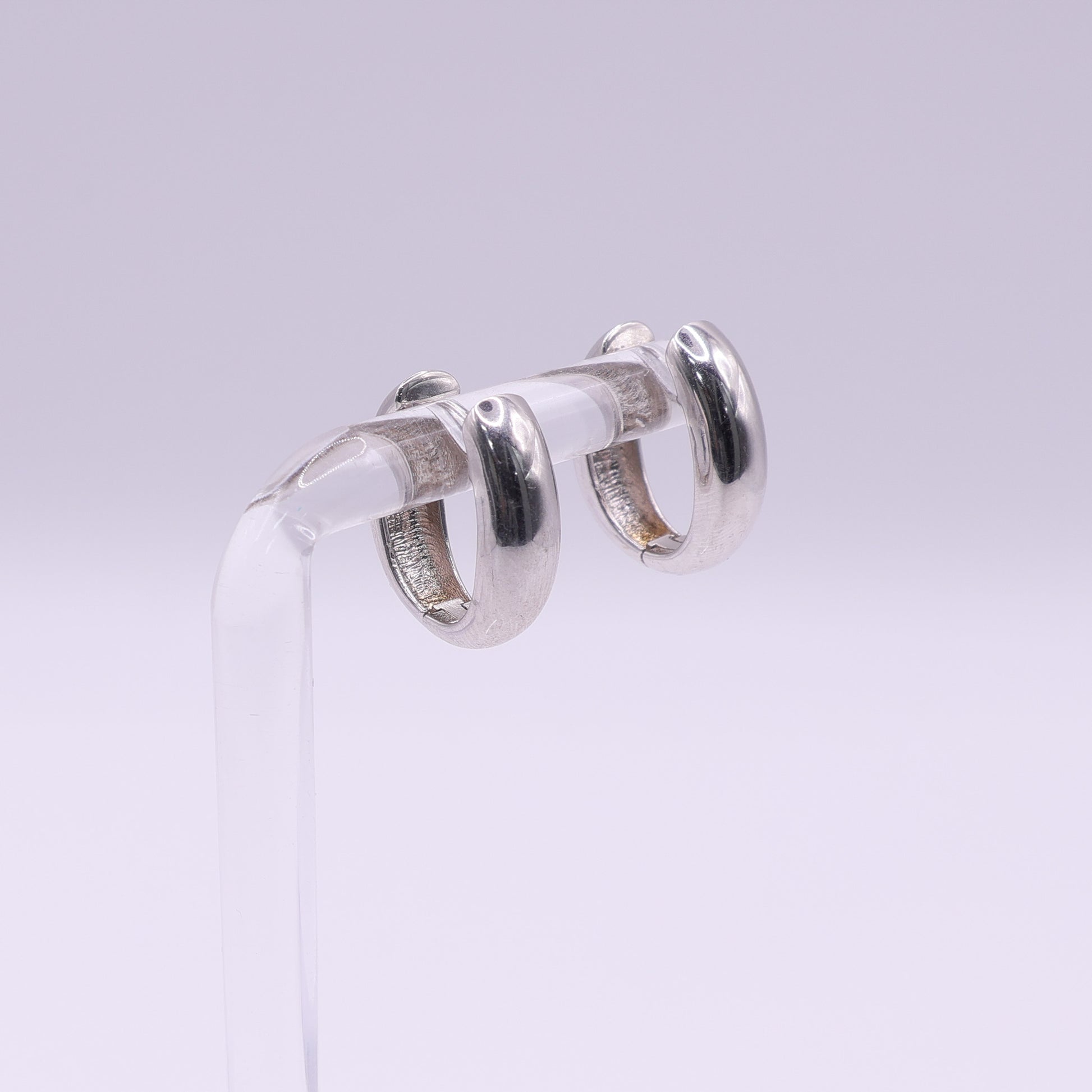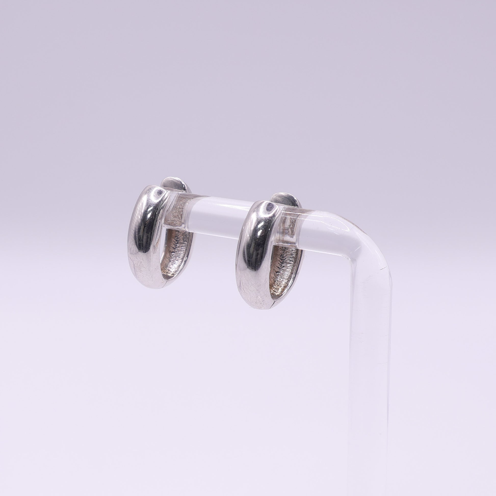 These 9ct white gold mini hoops have a smooth rounded shape that makes them an easy choice for everyday wear. They sit close to the ear with a neat curved profile, and the warm gold tone gives them a classic look. The posts are stamped 375, confirming their 9ct gold quality.