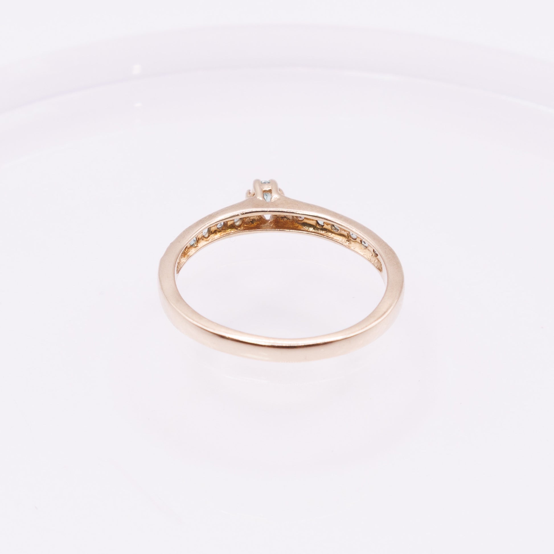 This ring is second-hand and in fair condition, showing surface wear and small scratches from previous use. A charming gold piece with a soft vintage style.