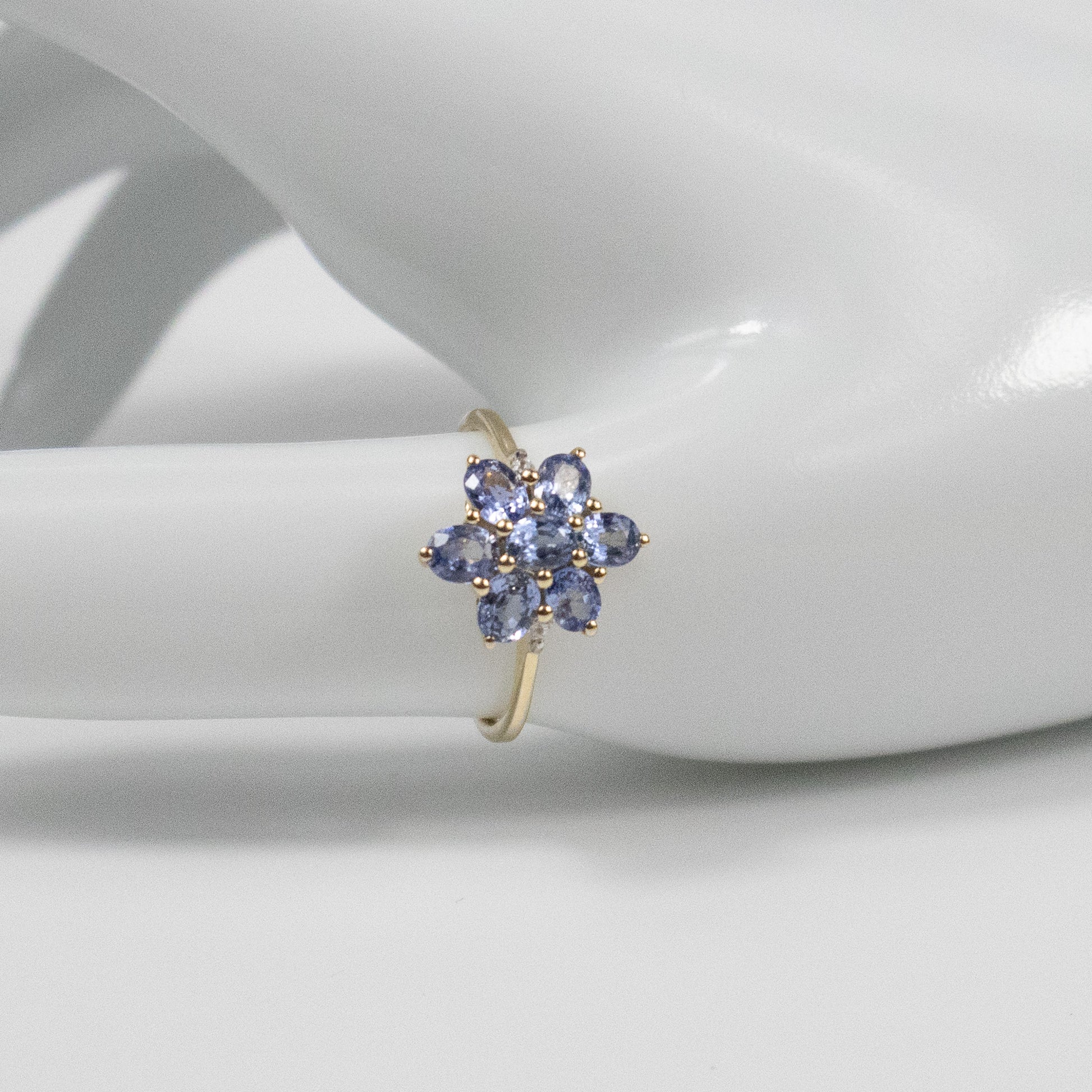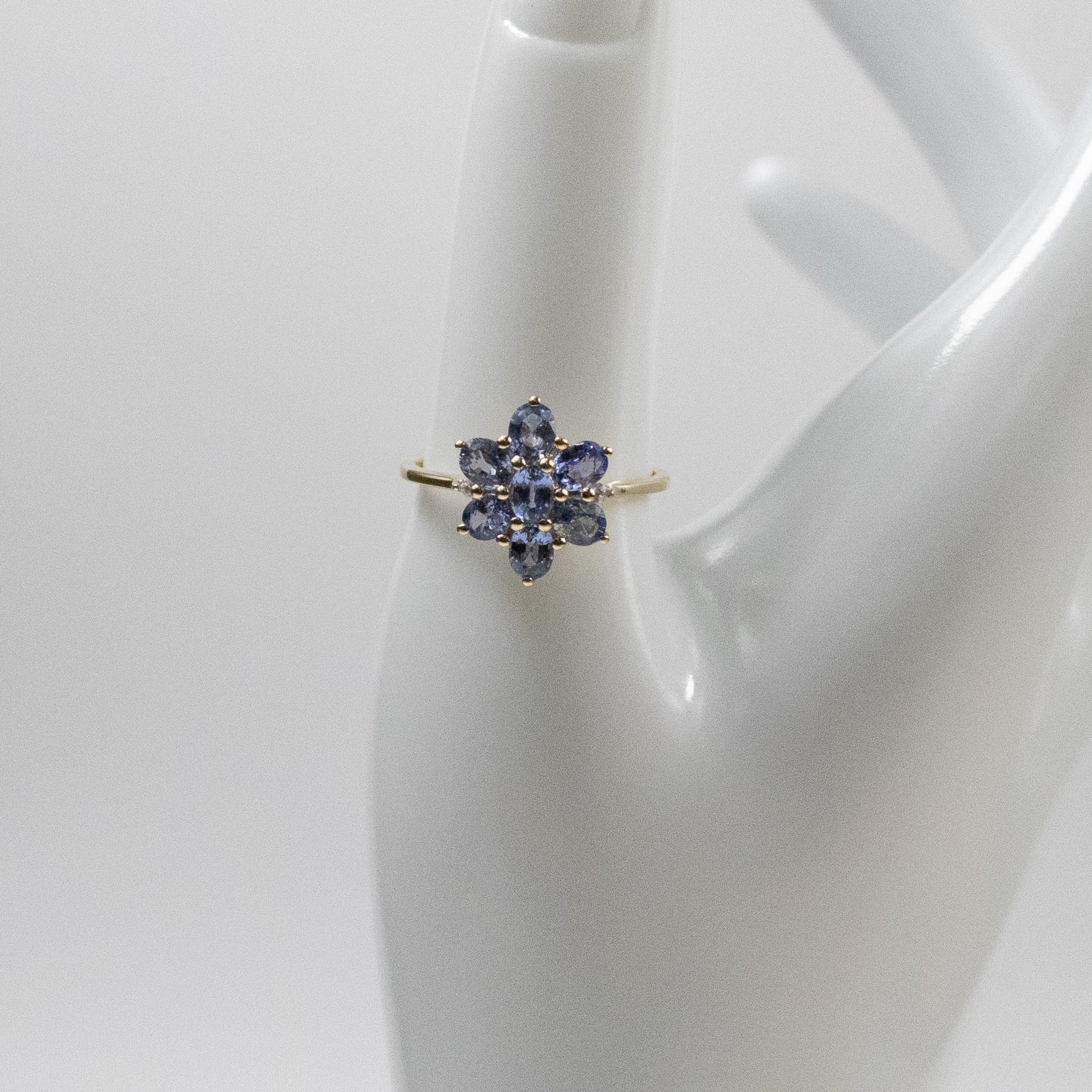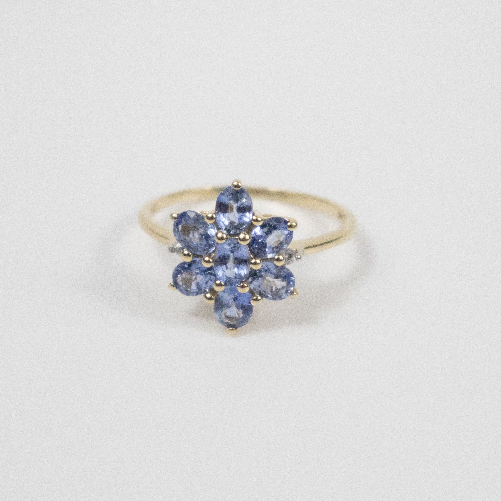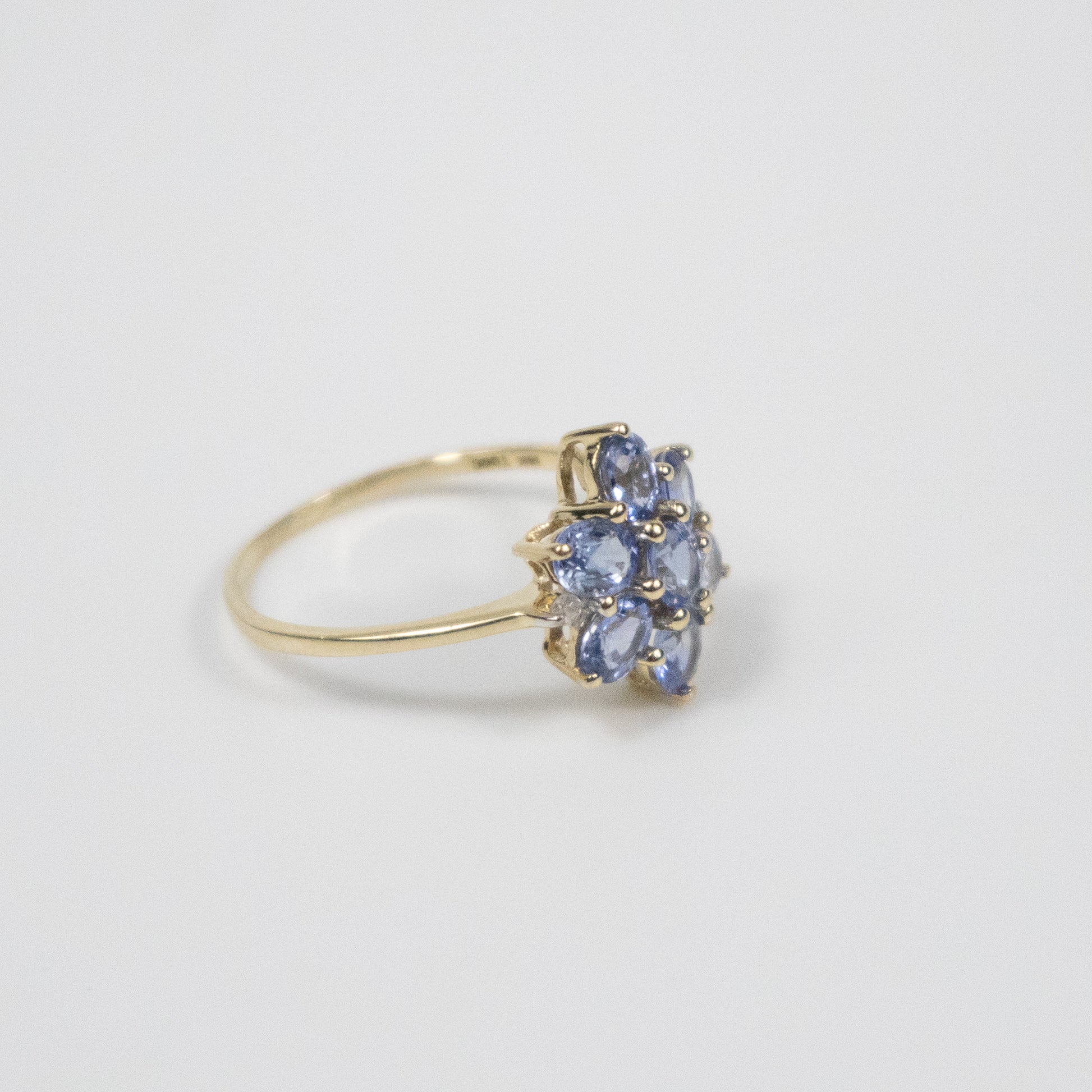 Second-Hand 9ct Yellow Gold Blue Topaz Cluster Flower Ring