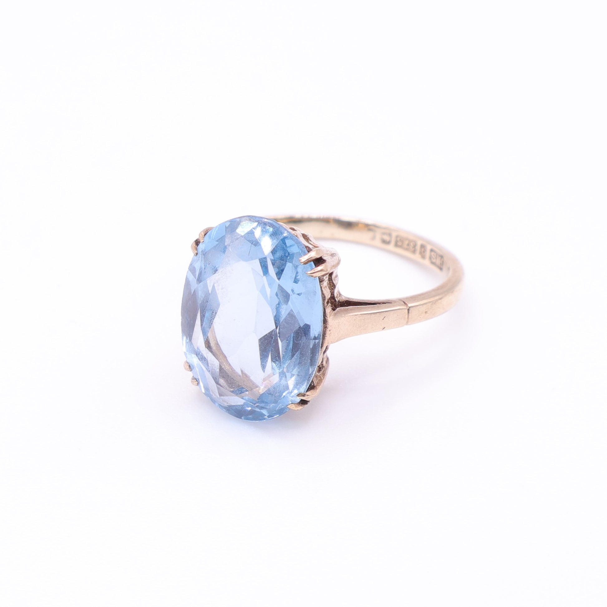 Second-Hand 9ct Yellow Gold Blue Topaz Oval Ring