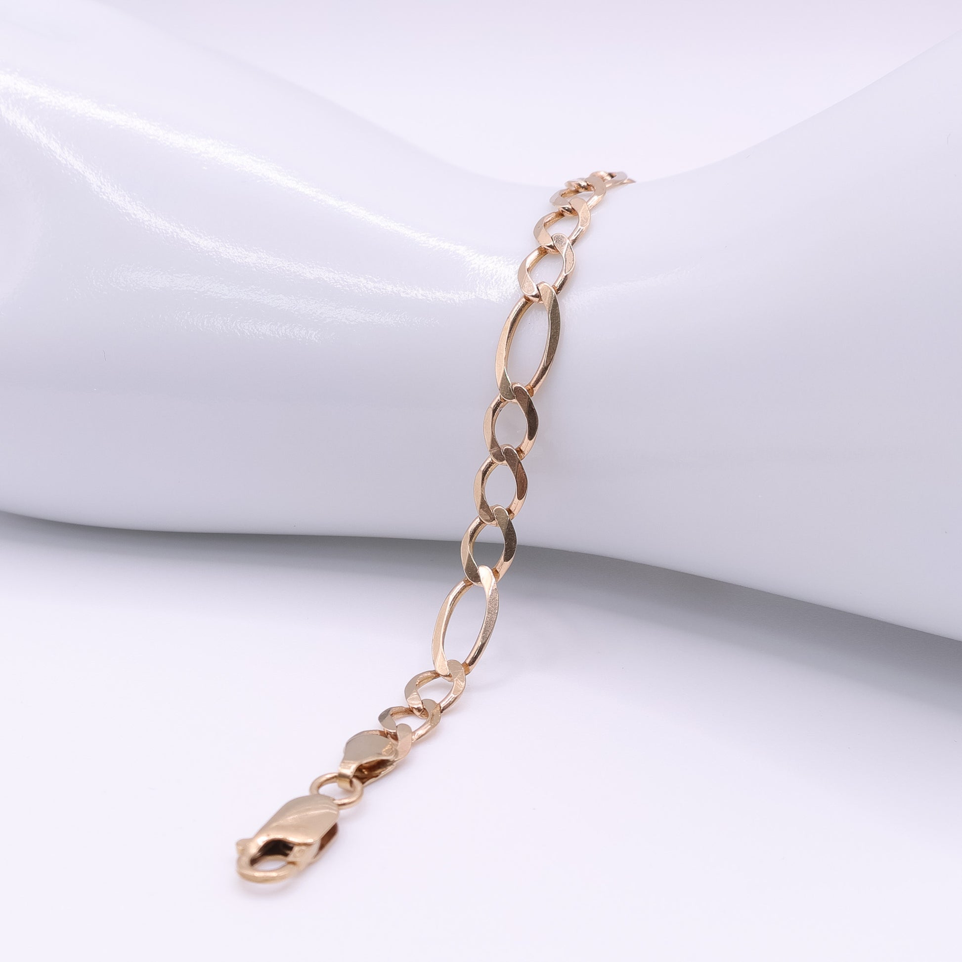 A 9ct gold bracelet crafted in a classic figaro link design with alternating long and short links. Finished with a secure lobster clasp and full UK hallmark. A versatile and timeless gold bracelet that layers beautifully or stands well on its own.
