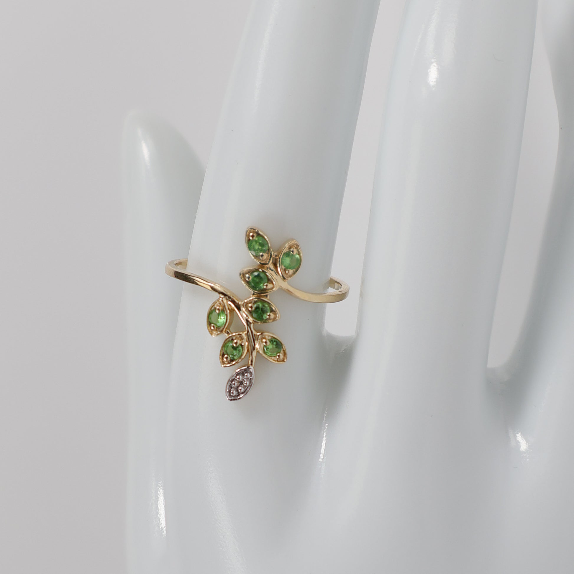 Second-Hand 9ct Yellow Gold Green Stone Leaf Ring