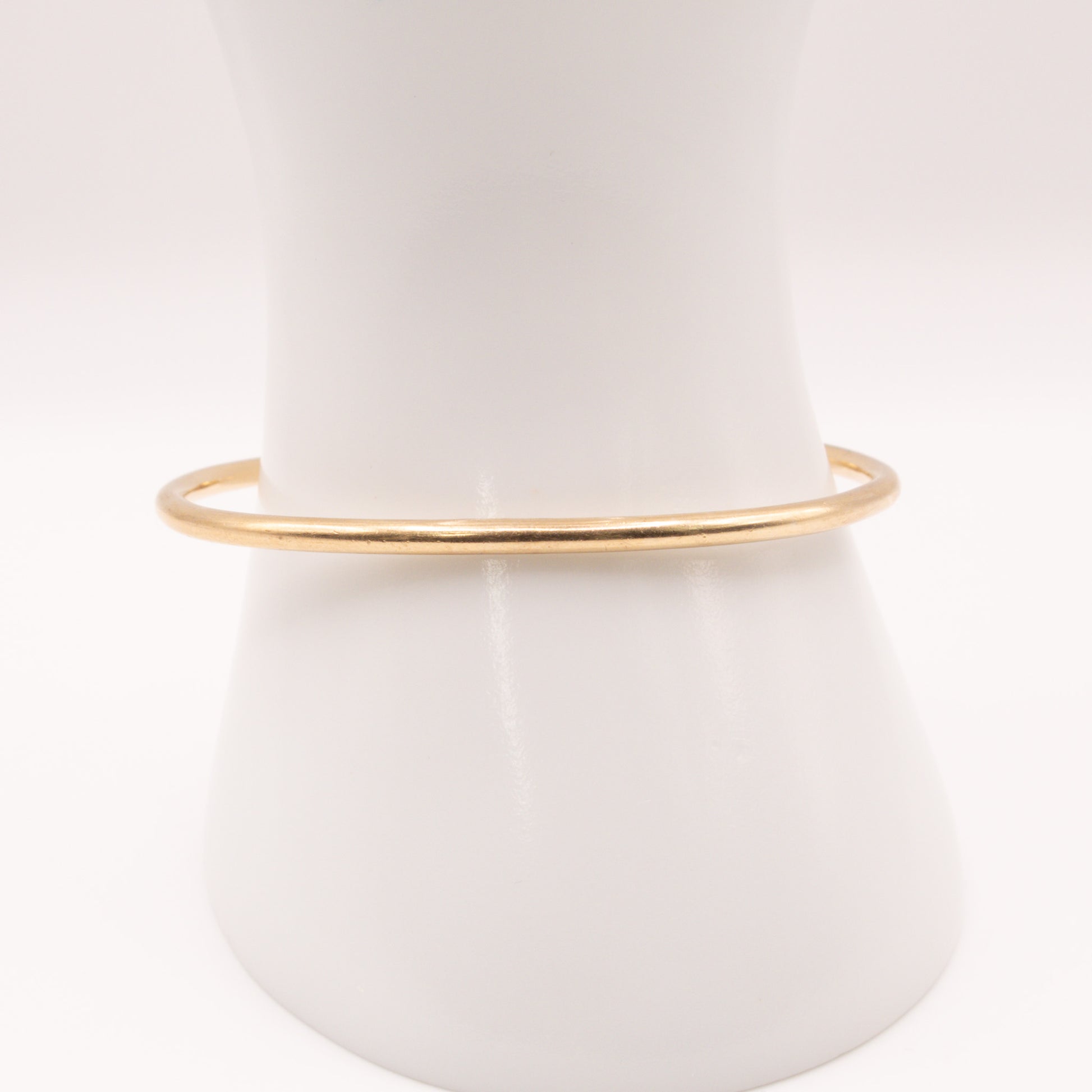 This second-hand 9ct yellow gold torque bangle is designed with a simple open shape finished with polished ball ends. Fully hallmarked and authenticated, it is a versatile piece that can be worn alone for a minimal look or stacked with other bangles and bracelets for extra impact.