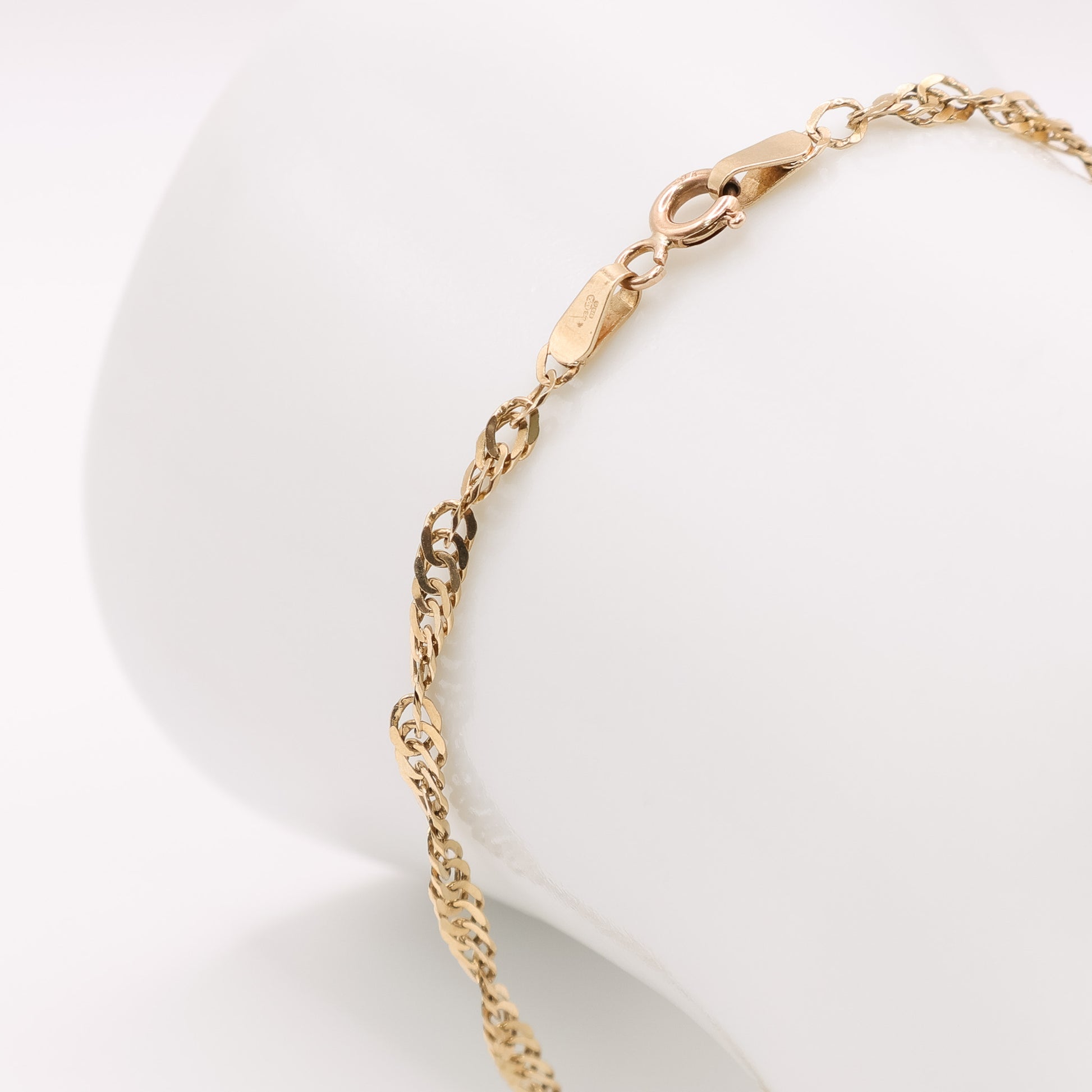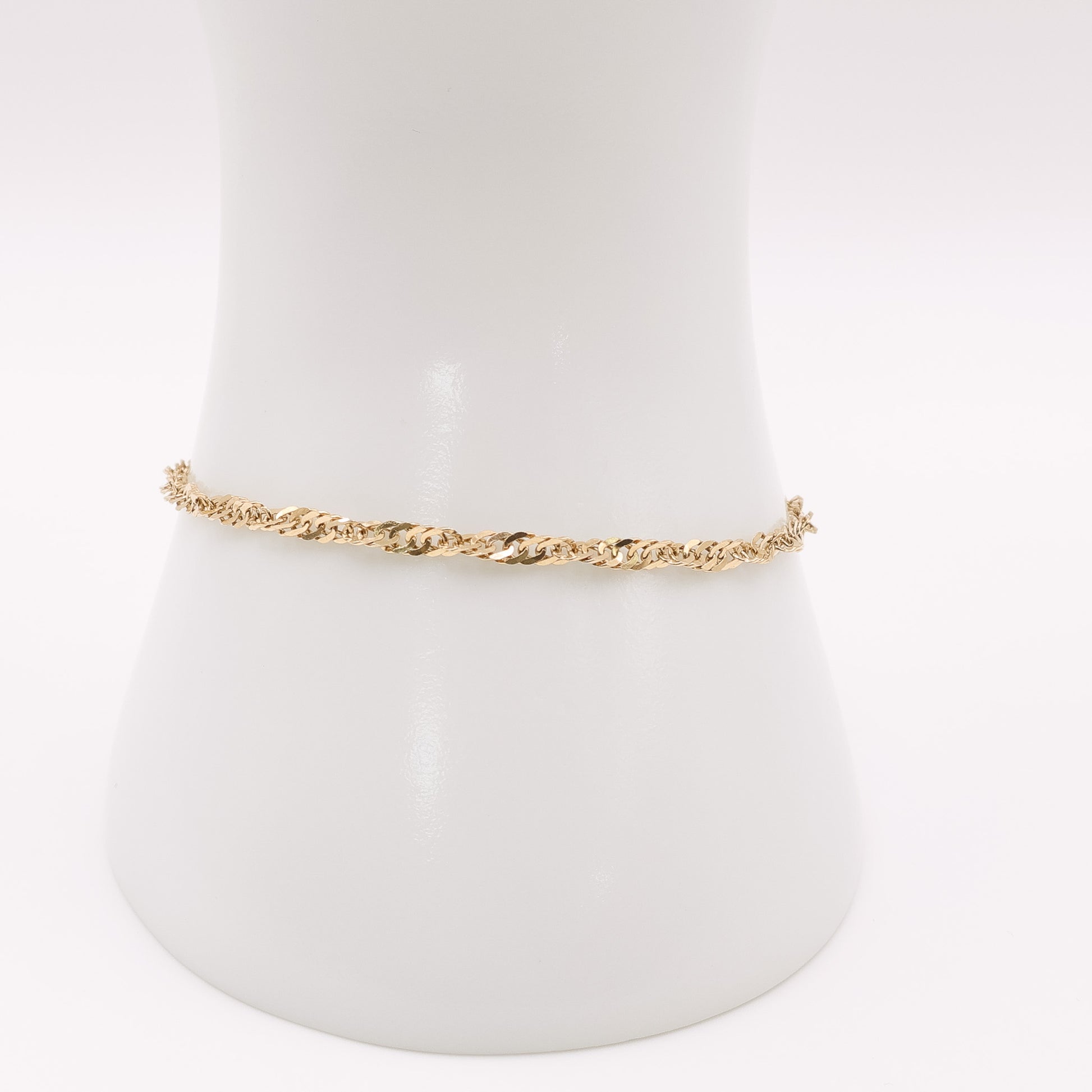 A 9ct gold bracelet crafted in a twisted curb link design, giving it a bright, textured finish that catches the light beautifully. Finished with a secure spring ring clasp and full UK hallmark. A classic gold bracelet with an elegant, easy-to-wear style.